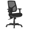 Features: • Standard mesh back with black fabric seat • Heigh and width black adjustable arms • Standard...