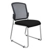 Features: • Black comfort mesh back • Stackable with no arms • Strong tubular silver chrome sled frame...