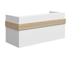 Modern simple designed reception counter finished in Beech Melamine front and side panels with Gloss White feature panel...